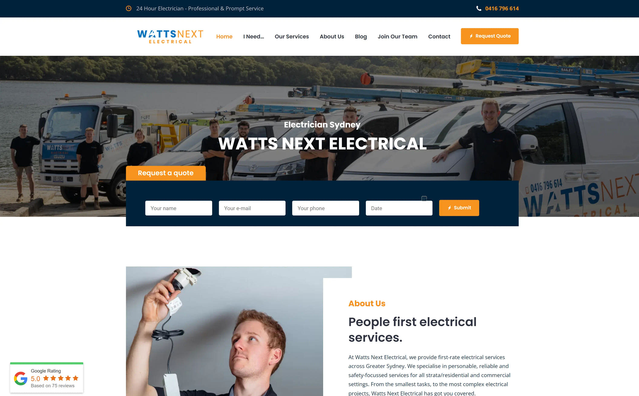 - A clickable phone number — 60% of electrician searches happen on mobile. If the number isn't tap-to-call, you're losing leads